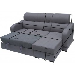 Disponuje úložným prostorem, tudíž do sedačky můžete vložit nepotřebné lůžkoviny nebo dětské hračky. Při objednání je potřeba specifikovat levou nebo pravou stranu.