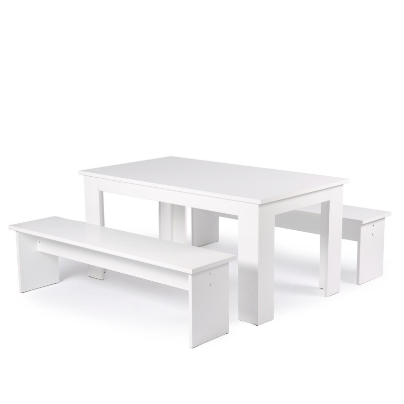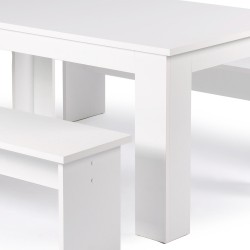 Moderní bydlení zahrnuje nejen promyšlenou a úžasnou architekturu domu, ale stejně důležité je také vybavení stylovým nábytkem. Jídelní sestava MUNCHEN v elegantní bílé barvě je úžasným nábytkem do každé moderní jídelny. Zapomeňte na obyčejné židle a tmavý stůl, stylová sestava zahrnující robustní bílý stůl a dvě bílé lavice bude v místnosti vypadat naprosto dokonale. U bílého stolu se vám bude sedět velice pohodlně, narovnejte záda a posaďte se po boku svých blízkých. Oslavy i rodinné sešlosti budou mít, díky této sestavě, příjemnou atmosféru. K prostorné lavici si lze navíc pořídit i sedáky Madagaskar v černé barvě a bílou jídelnu tak oživit. Jídelní sestava MUNCHEN je dokonalým spojením elegance a účelnosti. Usedněte k prostřenému stolu společně s celou rodinou, i všední rána budou, díky snídani servírované na krásném stole, ihned příjemnější.