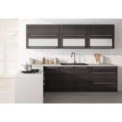 Kuchyňská linka TITANIUM je dodávána v sestavě 240 cm. V této sestavě je zahrnuta veškerá dvířkovina, korpusy, úchyty, soklová krytí nožiček i pracovní deska. Skříňky jsou rozvrženy pro maximální pohodlí při vaření, tudíž zde naleznete spodní skříňku se zásuvkami, skříňku určenou pro ustavení dřezu a dvoudvéřovou skříňku s policí. V horní sestavě pak najdete čtyři jednoduché skříňky. Všechny skříňky si můžete libovolně přehazovat, jak uznáte za vhodné. V případě, že budete mít zájem o rozšíření kuchyně, je možné doobjednat i jiné komponenty s této řady. Dřez a baterie nejsou součástí sestavy a pracovní deska nemá vyřízlý otvor pro dřez.