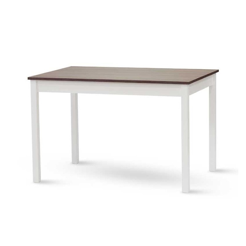 Klasický jídelní stůl v moderní kombinaci barev. Rozměry 80 - 120 - 140 délka a 80cm šíře a sedm možných provedení stále skladem. Možnost zakázkové úpravy rozměrů. Nohy buk 4,5 x 4,5 cm, deska lamino 18 mm s ABS hranou 2 mm.