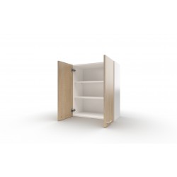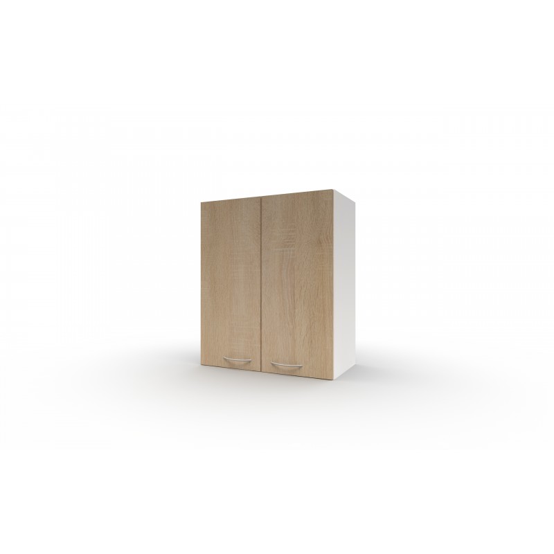 horní závěsná kuchyňská skříňka se dvěma dveřmi, za kterými jsou 2 variabilní police. Korpus skříňky je z lamina v bílé barvě, dveře z lamina v dekoru dub Sonoma. Úchytka - kovový oblouček. Dodáváno v demontu