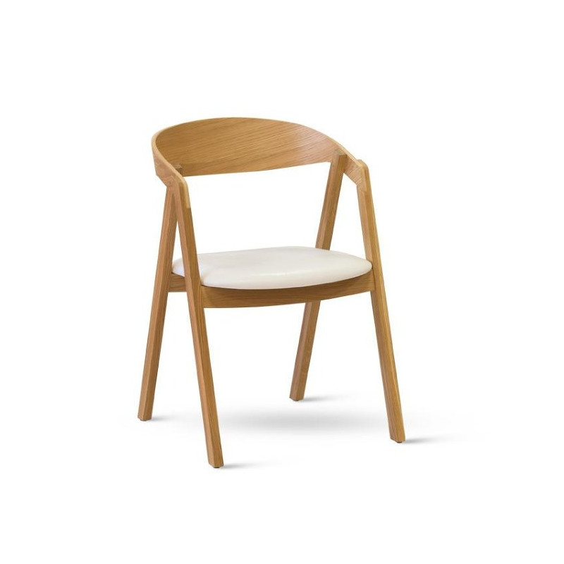 Křesílko k jídelnímu stolu z dubového masivu. Sedák čalouněný - výběr z 86 zakázkových látek. Pohodlné sezení, kvalitní provedení a ušlechtilý materiál spolu s cenou tvoří celek hodný pozornosti. Stohovatelné.