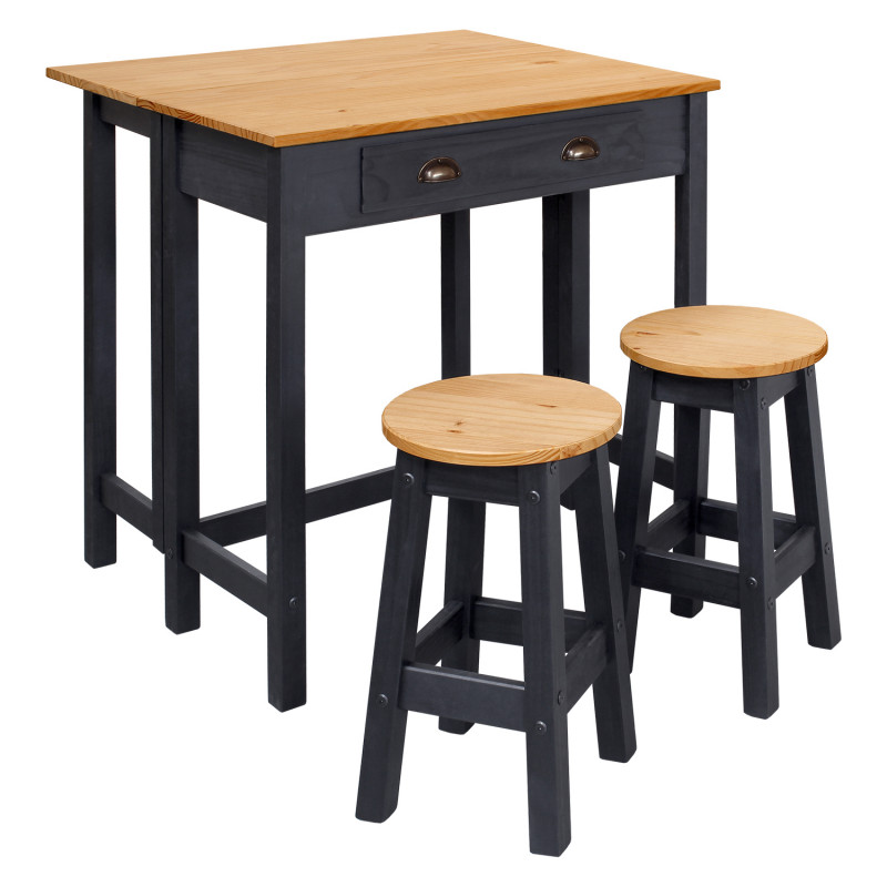 Barová sestava TAPAS v provedení černého vosku je skvostným přírůstkem do vašeho domova, zajišťujícím nejen stylové a moderní vyjádření, ale také praktickou funkčnost pro společenské okamžiky. Tato elegantní sestava je ideálním řešením pro ty, kteří ocení kombinaci estetiky a užitné hodnoty. Barová sestava TAPAS v černém vosku přináší do vašeho prostoru moderní a sofistikovaný vzhled. Černý vosk dodává nábytku jemný lesk a elegantní atmosféru. Sestava obsahuje zásuvku s kovovými pojezdy. Sestava obsahuje i dvě barové židličky. Výrobky jsou vyrobeny z kvalitních materiálů, což zajišťuje jeho odolnost a dlouhou životnost. Černý vosk nejenže chrání dřevo, ale také zdůrazňuje jeho přírodní krásu.