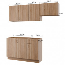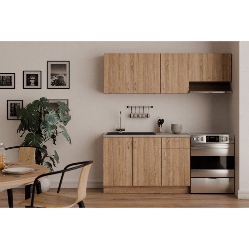 Kuchyňská linka Lama je ideálním řešením pro menší i středně velké prostory, kde je potřeba maximální využití úložného prostoru a funkčnosti. Design v dekoru dub sonoma dodává sestavě přírodní a moderní vzhled, který se snadno kombinuje s různými styly interiéru.