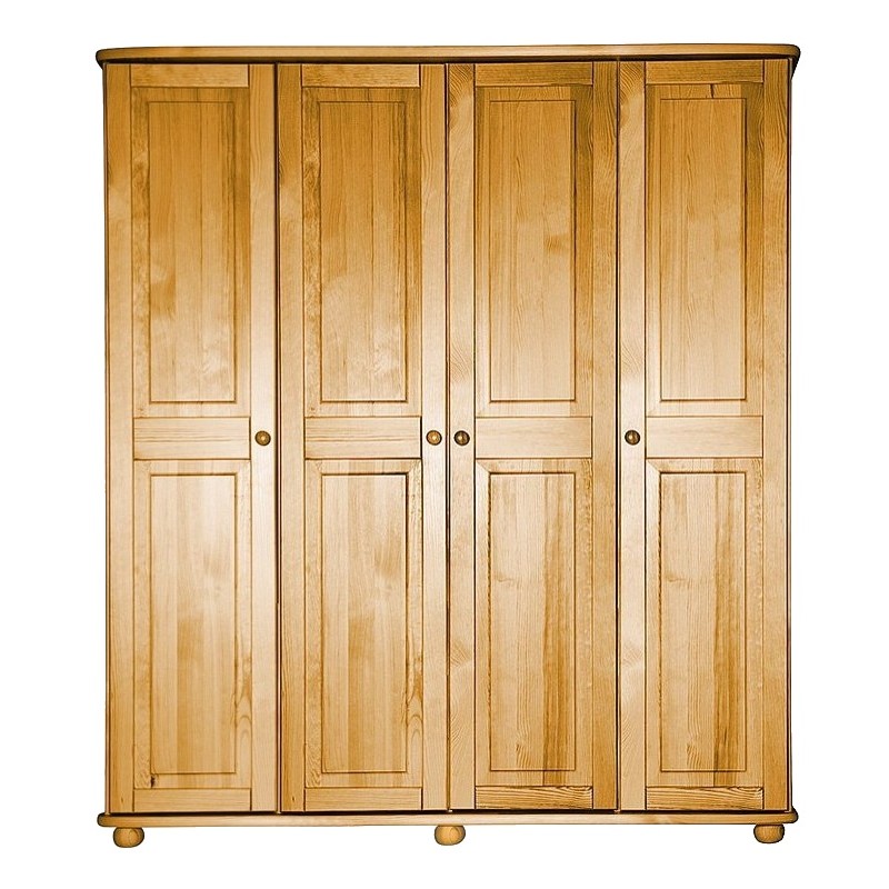 Tradiční borovicový nábytek ve vysoké kvalitě. Vyniká jednoduchostí, klasikou a elegancí. Masivní horní a spodní deska je z masivu o síle 25 mm, čelní plochy jsou bez výrazných suků. Vysoká je úroveň zpracování - dvojí lakování povrchů zvýrazňuje přirozenou strukturu dřeva. Velmi prostorná a úložná skříň 4-dveřová, uvnitř s policemi v postranních částech a se šatní tyčí uprostřed dobře poslouží k ukládání a rozdělení oděvů....