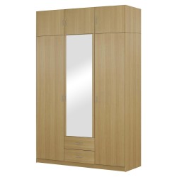 Skříně ESO jsou totiž vyrobeny v různých rozměrech, takže je postavíte v pokoji samostatně či vytvoříte opravdu funkční sestavu. Skříň ESO 3dveřová 11530 v barevném provedení buk krásně zapadne do ložnice vybavené právě nábytkem v provedení buk. Třídveřová skříň ESO je rozdělena na širší a užší část, v obou se nachází pevná šatní tyč a police vhodná na doplňky. Pod druhými zrcadlovými dvířky v širší části skříně se nalézají ještě dvě malé zásuvky k uložení drobného prádla. Tato skvělá skříň tedy bude sklízet především úspěch ve vaší společné ložnici, přehledně pověšené oblečení a následná kontrola zevnějšku ušetří drahocenný čas. Zrcadlové dveře opticky zvětší prostor ložnice, na skříň lze navíc umístit i praktický nástavec 11535. Vyberete si skříně, které budou vyhovovat vašim nárokům, a zařiďte si pokoj jedinečnou sestavou ze skříní ESO.