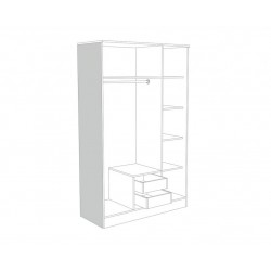 Šatní skříň IVA 3K2F s šatní tyčí na pověšení a jednou policí, ve spodní části jsou dva malé šuplíky a na druhé straně jsou čtyři police na uložení věcí. Velice praktická skříň IVA se hodí do studentského pokoje, ložnice nebo i do předsíně.