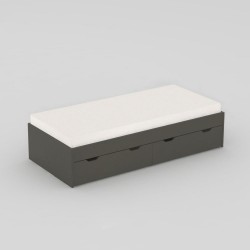 Lůžko pro matraci 200 x 90 cm, vhodný je laťkový rošt. Materiál - lamino 25 mm, hrany ABS 2 mm. Pod lůžkem jsou 2 zásuvky, které slouží jako úložný prostor na lůžkoviny, hračky či sezonní věci. Výběr dekorů lamina. Dodání - demont.