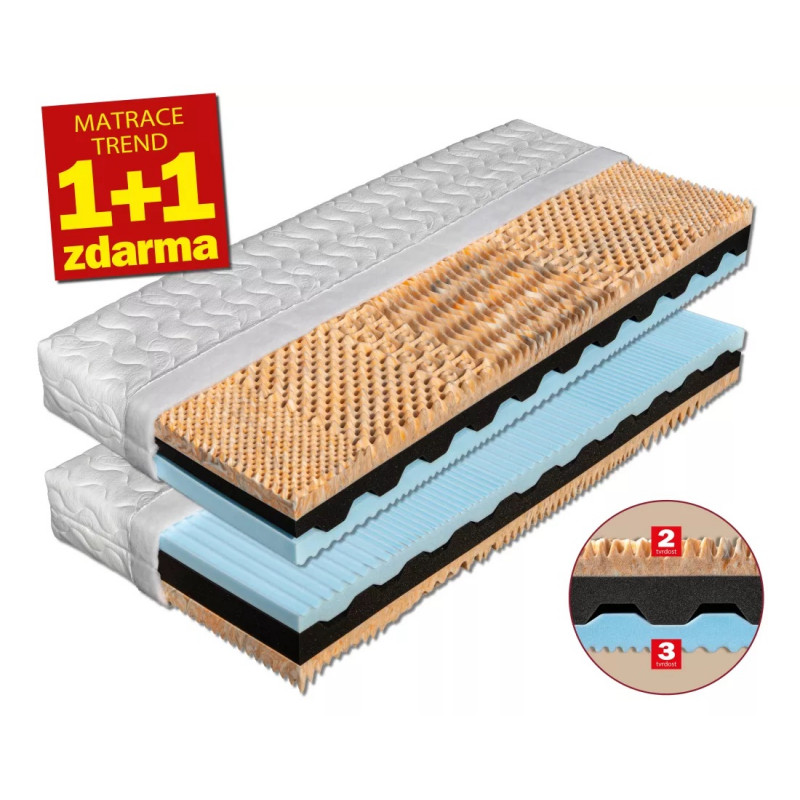 Nosnost do 120 kg. Tuhost 2. a 3. stupeň. Do rozměru 200 x 90 - se nepřipočítává příplatek za atyp.