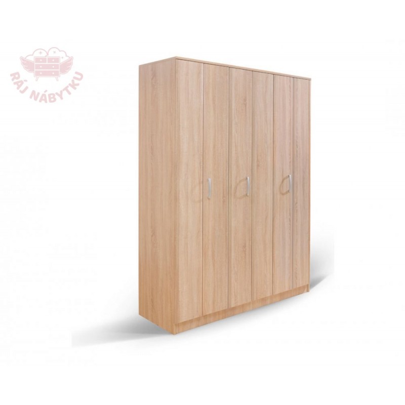 Velká a hodně úložná šatní skříň. Ze dvou třetin se šatní tyčí a z jedné třetiny policová. Výhodou jsou lamelové dveře s ABS softovou hranou, které jsou skládací a nezabírají místo. Pro otevření postačí cca 40 cm před skříní. Dveře jsou vybaveny vodícími lištami systému Hettich od německého výrobce. Celé skříně jsou vyrobeny z LTD o síle 18 mm. Úchytky jsou kovové. Skříně jsou vhodné k vybavení ložnice, chodby, šatny, předsíně... vždy oceníte praktičnost a spoustu úložného prostoru pro oblečení, boty, tašky, kufry, batohy..... Skříně se dodávají v demontu.