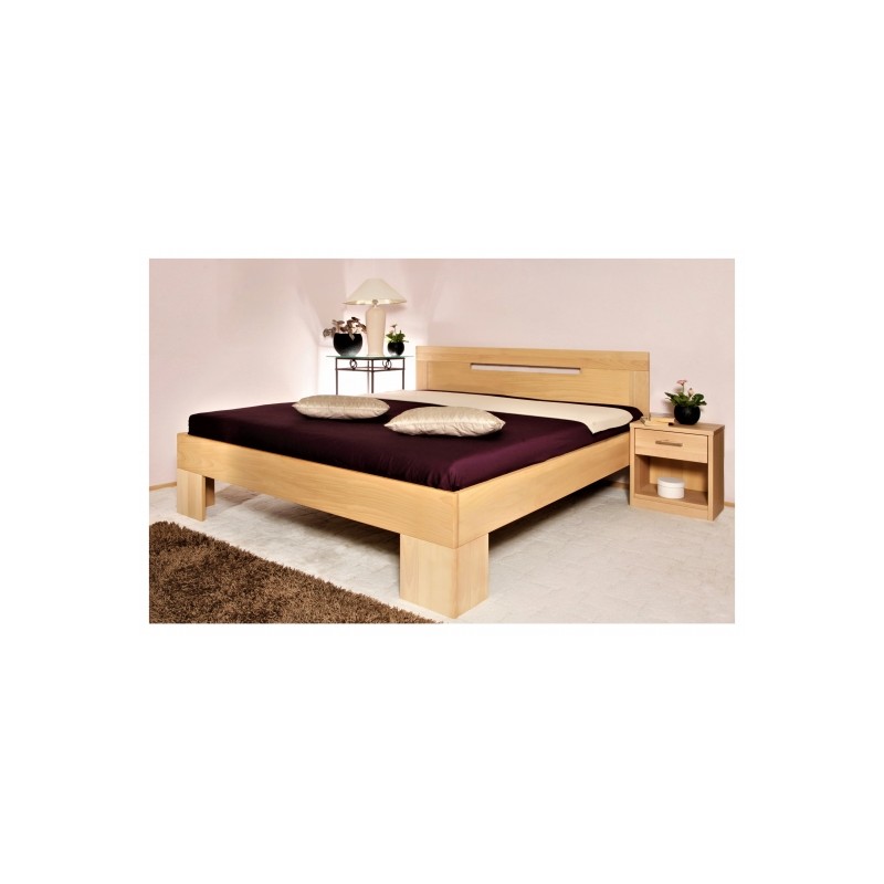 Luxusní masivní postel vyrobená z průběžného buku, který zajišťuje celistvý vzhled dřeva. K výjimečnosti této kvalitní postele přispívá zaoblení hran a její zvýšená lehací plocha ve výšce 50 cm s několika možnostmi nastavení výšky matrace od podlahy. Charakteristický moderní designový vzhled jí dodává obdélníkový otvor v čele postele.