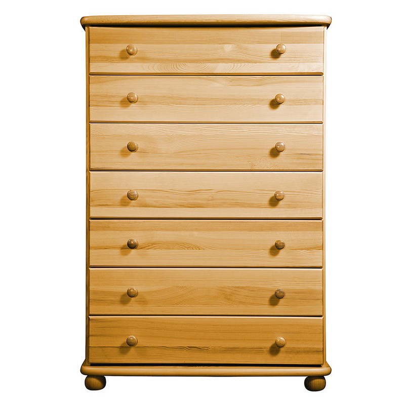 Tradiční borovicový nábytek ve vysoké kvalitě. Vyniká jednoduchostí, klasikou a elegancí. Masivní horní a spodní deska je z masivu o síle 25 mm, čelní plochy jsou bez výrazných suků. Vysoká je úroveň zpracování - dvojí lakování povrchů zvýrazňuje přirozenou strukturu dřeva. Komoda má kovové pojezdy.