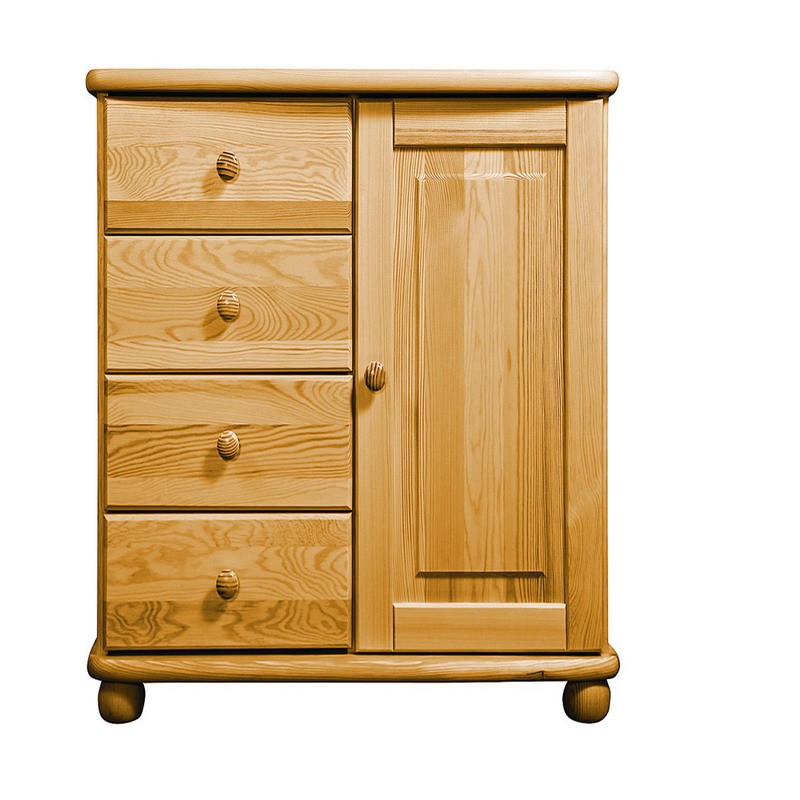 Tradiční borovicový nábytek ve vysoké kvalitě. Vyniká jednoduchostí, klasikou a elegancí. Masivní horní a spodní deska je z masivu o síle 25 mm, čelní plochy jsou bez výrazných suků. Vysoká je úroveň zpracování - dvojí lakování povrchů zvýrazňuje přirozenou strukturu dřeva. Zásuvky jezdí po kovových pojezdech.
