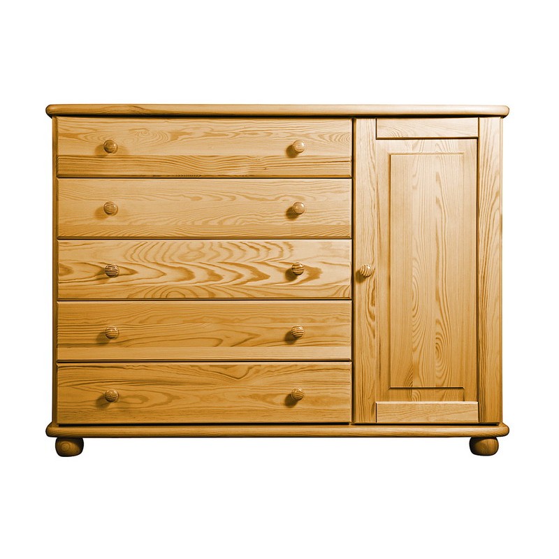 Tradiční borovicový nábytek ve vysoké kvalitě. Vyniká jednoduchostí, klasikou a elegancí. Masivní horní a spodní deska je z masivu o síle 25 mm, čelní plochy jsou bez výrazných suků. Vysoká je úroveň zpracování - dvojí lakování povrchů zvýrazňuje přirozenou strukturu dřeva. Zásuvky jezdí po kovových pojezdech.