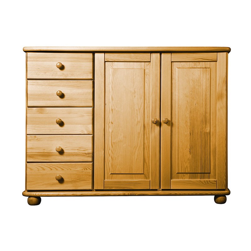 Tradiční borovicový nábytek ve vysoké kvalitě. Vyniká jednoduchostí, klasikou a elegancí. Masivní horní a spodní deska je z masivu o síle 25 mm, čelní plochy jsou bez výrazných suků. Vysoká je úroveň zpracování - dvojí lakování povrchů zvýrazňuje přirozenou strukturu dřeva. Zásuvky jezdí po kovových pojezdech.