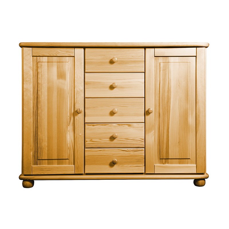 Tradiční borovicový nábytek ve vysoké kvalitě. Vyniká jednoduchostí, klasikou a elegancí. Masivní horní a spodní deska je z masivu o síle 25 mm, čelní plochy jsou bez výrazných suků. Vysoká je úroveň zpracování - dvojí lakování povrchů zvýrazňuje přirozenou strukturu dřeva. Zásuvky jezdí po kovových pojezdech.