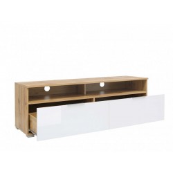 Televizní stolek Zele RTV2S má moc krásný elegantní design. Obsahuje 2 volné police na elektroniku, za kterými se nachází otvor pro kabeláž. Pod nimi jsou 2 praktické a prostorné šuplíky na příslušenství k elektronice, DVD nebo časopisy.
