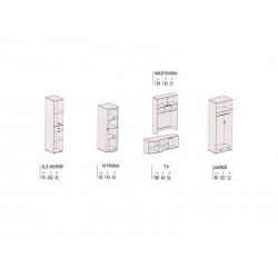 K této obývací stěně se dokonale hodí konferenční stolek Hella, nebo komoda Gerti viz Související zboží.