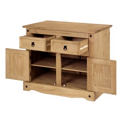 Komoda 2 dveře + 2 zásuvky CORONA 3 16327 v provedení masivní borovice v medovém odstínu pojme řadu nejrůznějších věcí. Bude se hodit do obývacího pokoje, pracovny i ložnice. Komoda CORONA 3 je dělaná na dva úložné prostory opatřené dvířky, ve kterých se nachází dvě police. V ložnici tedy komoda poslouží místo prádelníku, v obývacím pokoji a pracovně na knihy. Pokud bude komoda umístěna v ložnici, zajisté do ní uložíte ručníky, osušky, deku či ložní prádlo. Komoda vám poskytne kromě úložného prostoru i velkou plochu k vystavení oblíbených věcí a dekorací, zabydlete pokoj drobnostmi, které máte rádi a vytvořte v místnosti milou a přátelskou atmosféru, světlý nábytek vám bude nápomocen.