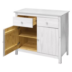 2 zásuvky s kovovými pojezdy, 2 plné dveře, 1 police