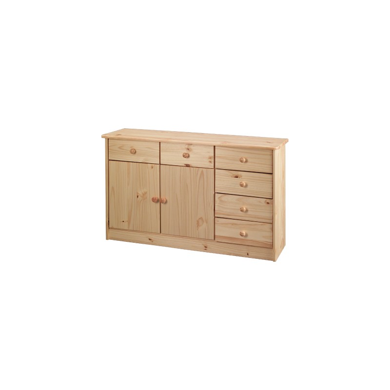 Komoda 5 v provedení masiv borovice je skvělým kouskem nábytku, který zaujme čestné místo v předsíni, šatně, obývacím pokoji, dětském pokojíčku i ložnici. Komoda disponuje hned šesti zásuvkami s kovovými pojezdy a prostornou skříňkou s dvířky a variabilní policí. Komodu využijete především jako šikovný prádelník pro celou rodinu a přehledně do ní uložíte spodní prádlo, ponožky či poskládáte ručníky. V obývacím pokoji a pracovně pak poslouží k uložení nejrůznějších drobností a dokumentů. Kvalitní komodu umístíte, kam se vám zlíbí a její plochu též ozdobíte dle svého gusta. Komoda se dá skvěle kombinovat s ostatním nábytkem z masivu, vytvoříte si tak celé nábytkové stěny plné úložného prostoru. Pevný a nenáročný nábytek si oblíbí celá vaše rodina. Mějte všichni v praktické komodě svůj vlastní prostor k uložení věcí, i nábytek vás totiž může spojovat.