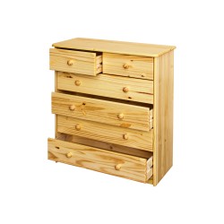 Masivní komoda se zásuvkami je skvělou volbou do ložnice či dětského pokoje zařízeného právě masivním nábytkem. Světlým nábytkem vybavený pokoj bude působit na první pohled velice příjemně. Komoda 9 v provedení masiv borovice obsahuje dvě úzké a čtyři široké zásuvky s kovovými pojezdy, na drobné prádlo, ručníky a ložní prádlo je naprosto ideálním kouskem. Dokonalá kresba dřeva dělá z této pevné komody nejen praktický, ale především opravdu hezký kousek nábytku, komoda se pro vás stane nepostradatelnou. Komoda vám velice dobře poslouží i na dětské oblečení a nejrůznější doplňky. Kvalitní komoda zastane funkci prádelníku i kontejneru poblíž psacího stolu, dalé pak zajistí důležité místo ve vaší přeplněné skříni. Vyberte pečlivě vhodný prostor pro vaši novou komodu, není snad pokoj, kde vám nemůže být nápomocna.
