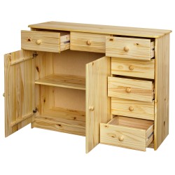Přece do komody, která tyto věci přehledně rozdělí do jednotlivých zásuvek, vždy tak budete mít o věcech přehled a nic se už nebude nacházet mimo úložný prostor. Komoda 10 je tedy ideálním řešením pro uschování všech drobných věcí. Masivní komoda totiž obsahuje hned sedm zásuvek s kovovými pojezdy a navíc má i úložný prostor s variabilní policí nacházející se za dvířky. Komoda s krásným dezénem dřeva tak doplní vybavení kanceláře či pracovny, umístíte ji však i do pokoje jako prádelník, či do kuchyně jako příborník. Užší komoda však nejlépe zapadne do chodby a šatny, kde poslouží na klíče a drobné doplňky. Komoda 10 si bude nejlépe rozumět s dalším masivním nábytkem, především ji umístíte vedle masivní skříně, masivního botníku, či po boku masivního pracovního stolu. Komoda 10 vám zajistí absolutní pořádek a řád ve vašich věcech.