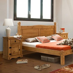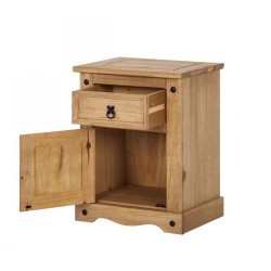 Kvalitní lůžko je základem pro plnohodnotný odpočinek. Pokud vám padlo do oka lůžko či dvoulůžko ze sestavy Corona, zajisté vás potěší možnost toto pevné lůžko opatřit i praktickým nočním stolkem. Noční stolek CORONA 16345 v provedení masiv borovice bude vedle lůžka vypadat skvěle. Krásný noční stolek voskovaný v medovém odstínu obsahuje jednu zásuvku a dvířka, za kterými se nachází prostor pro uložení knih i nejrůznějších drobností. Robustní stolek je zdoben výrazným černým kováním. Noční stolek má možnost montáže pantů na levou i pravou stranu, takže vám bude plně vyhovovat, ať už ležíte na pravé či levé straně lůžka. Kvalitní a precizně zpracovaná sestava Corona bude ozdobou vaší ložnice, noční stolek vám pak bude po ruce jak před usnutím, tak po probuzení.