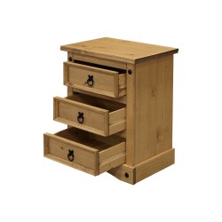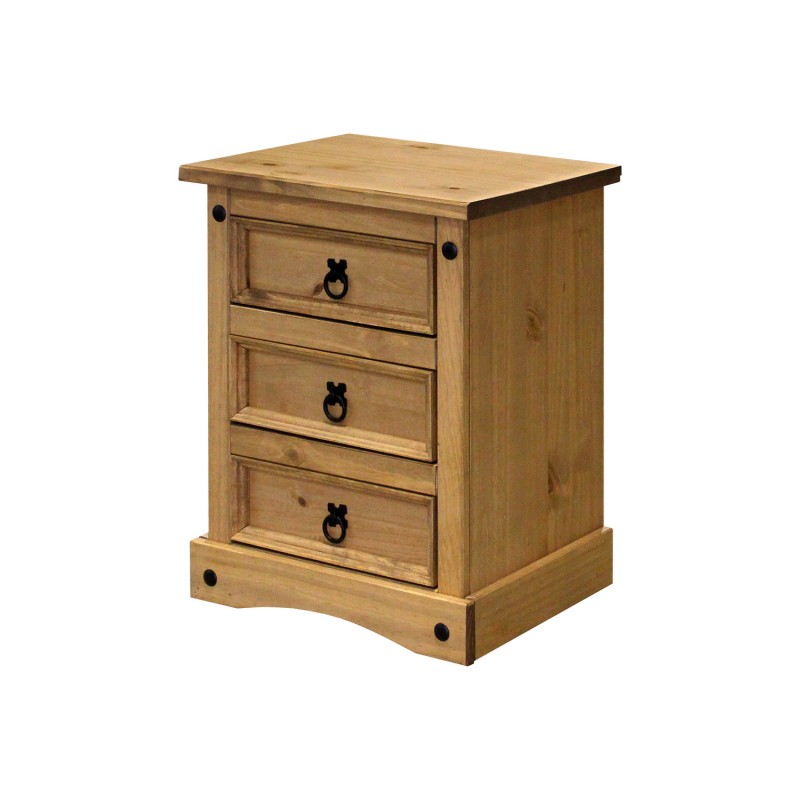 V naší široké nabídce naleznete mnoho krásných kousků nábytku, pokud však hledáte něco naprosto unikátního, nábytek Corona vám nesmí chybět. Jestliže vám do oka padlo některé z lůžek Corona, zajisté se již poohlížíte po praktickém nočním stolku. Noční stolek 3 zásuvky CORONA v provedení masiv borovice uspokojí vaše představy o hezkém a plně funkčním stolku. Noční stolek je voskován v úžasném medovém odstínu a nabízí vám hned tři zásuvky pro uložení knih, léků, drobných věcí i nejrůznějších tajností. Zásuvky jsou navíc zdobeny originálními kovovými úchytkami. Na plochu stolku snadno postavíte jak lampičku, tak budík. Probouzejte se do nového rána pohledem na okouzlující kousek nábytku, tento praktický noční stolek bude vždy po ruce, a to hned vedle pohodlného lůžka Corona.