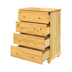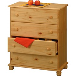 Prádelník v provedení masiv borovice je dokonalým kouskem na chatu či chalupu, ovšem velice dobře vám poslouží i ve vaší domácnosti. Pokud totiž máte skříň pouze se šatní tyčí a policí, pak vám jistě chybí prostor na spodní prádlo, trička a ručníky, v tomto případě je prádelník ideálním řešením. Prádelník 4 zásuvky v provedení masiv borovice má čtyři široké zásuvky s kovovými pojezdy, snadno tak uskladníte i deky a osušky. Šikovné prádelníky vám pomohou s uspořádáním šatníku i s uložením nejrůznějších věcí. Nenahraditelnou službu poskytnou i novopečeným maminkám, vedle přebalovacího pultu vám tento kousek nábytku bude vždy po ruce, snadno si tak podáte čisté pleny i nové body. Prádelník pak bude v dětském pokoji nadále sloužit odrostlejším dětem na hračky a studentům na učivo do školy. Kvalitní prádelník je zkrátka dobrou volbou do každé domácnosti.