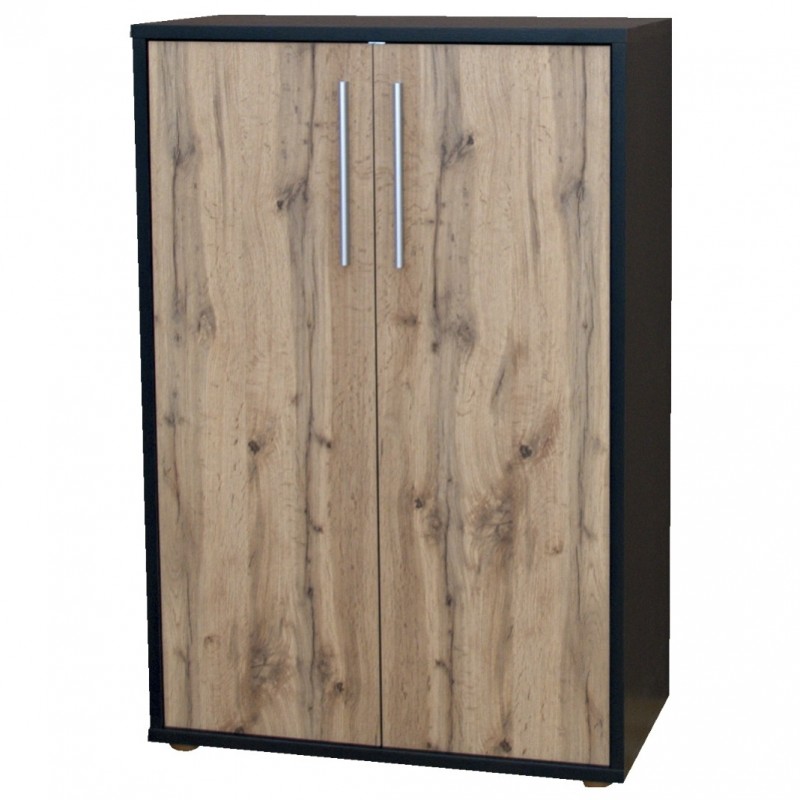 Skříňka s dveřmi na kluzácích se 3 černými policemi, které jsou za dveřmi a jsou variabilní. Vaše desky na dokumenty a další pracovní předměty budou mít své přehledné místo a i případný pracovní nepořádek zůstane skrytý za zavřenými dveřmi. Omezená nabídka, do vyprodání zásob !!! Lamino 22 mm a 16 mm, hrana ABS 2mm + 0,5