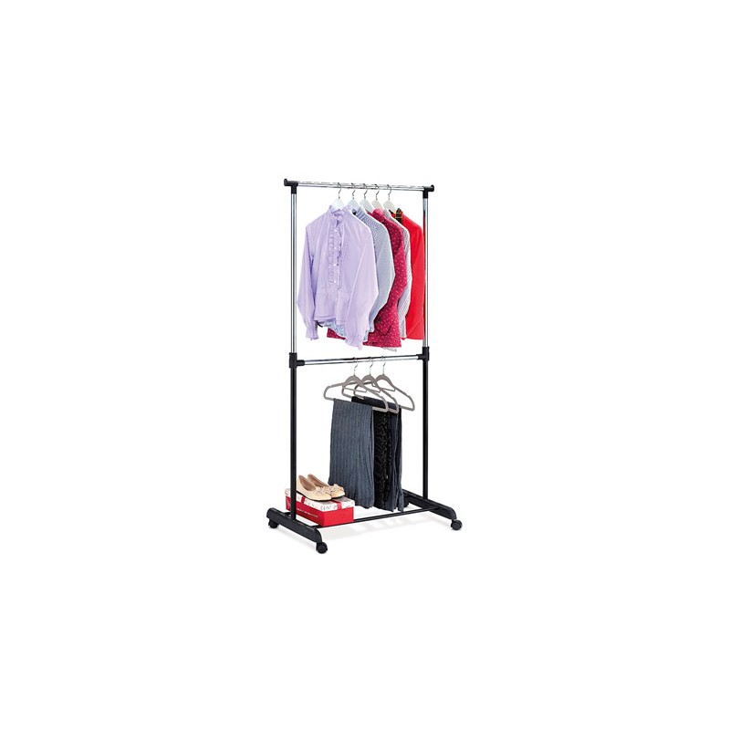 Popis: Stojan na šaty na kolečkách, výškově nastavitelný s odkladačem na boty. Provedení chrom + bílý plast. Doporučená nosnost je 10 kg rovnoměrně rozložené zátěže na jedno rameno. Stojan je určený do domácností a není určen pro zátěžový provoz. Dodáváno v demontovaném stavu.