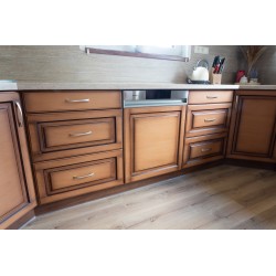 Zakázková kuchyně - vždy se odvíjí od přání zákazníka - výběr materiálů a dekorů, výška pracovní desky, řešení úložných prostorů, vestavných spotřebičů, horních i spodních skříněk. Koncept kuchyně - rovná, do L, do U, s ostrůvkem. Po dohodě materiálů, uspořádání a ceny dojde k zaměření a doplnění detailů. Následuje výroba a realizace. Zakázky jsou kalkulovány včetně manipulace, dopravy a montáže. Garantujeme pozáruční servis. TATO KONKRÉTNÍ KUCHYNĚ JE NA PŘÁNÍ ZÁKAZNÍKA VYROBENÁ NA MÍRU DO NOVÉHO RODINNÉHO DOMU NA OKRAJI MALÉ VESNICE. ZÁKAZNÍCI VELMI CITLIVĚ PŘISTOUPILI K VYBAVENÍ NOVÝCH PROSTOR TAK, ABY SKLOUBILI MODERNÍ TECHNOLOGIE S RUSTIKÁLNÍ LINIÍ. TLESKÁME - VYŠLO TO VÝBORNĚ !!! Zakázková dvířka - patinovaná MDF.