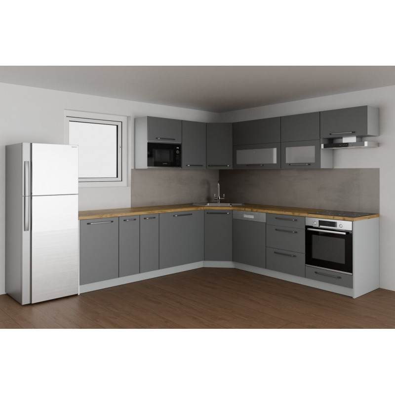 Šikovní mladí lidé, kteří budují svůj domov svépomocí. Kuchyni si poskládali ze sériových skříněk, naše společnost zaměřila pracovní desku a dokončila dílo.